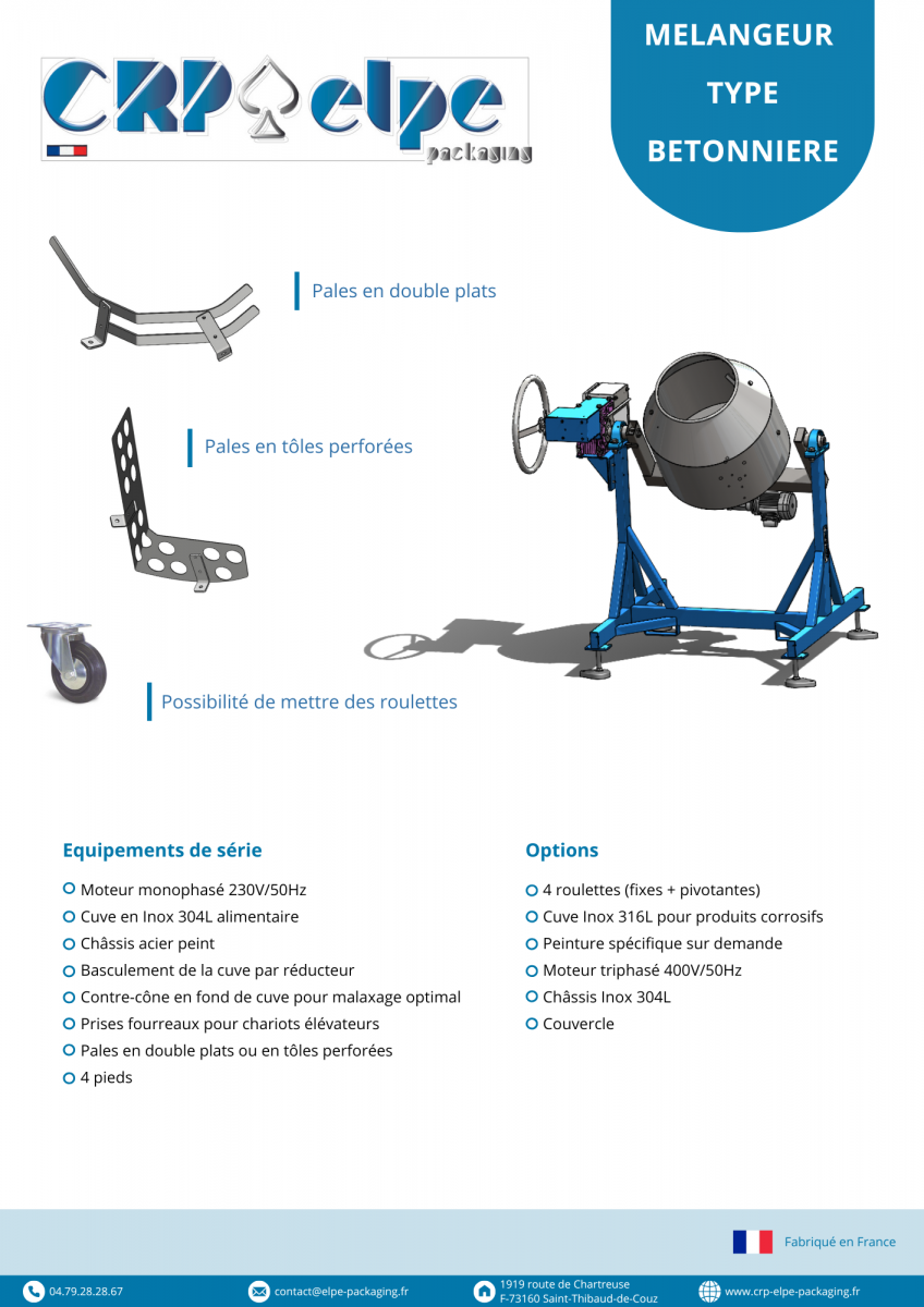 2025, marque un nouveau tournant pour notre société avec la fabrication de nos 1ers mélangeurs type bétonnière tout inox sous notre marque CRP-ELPE PACKAGING.